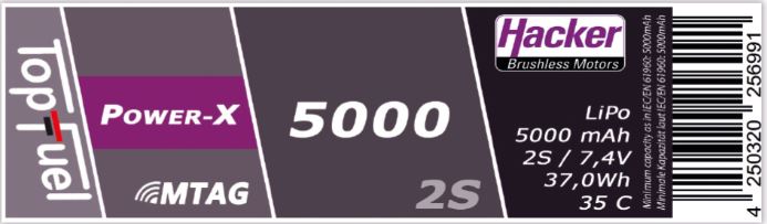 Lipo 7,4/5000 POWER-Xmtag XT90AB/XH - TopFuel LiPo 35C Power-X 5000mAh 2S MTAG