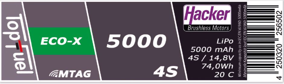 Lipo 14,8/5000 ECO-Xmtag XT90AB/XH - TopFuel LiPo 20C ECO-X 5000mAh 4S MTAG