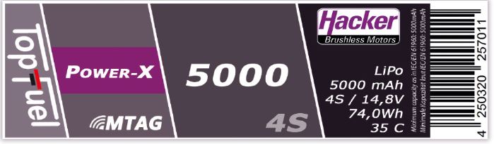 Lipo 14,8/5000 POWER-Xmtag XT90AB/XH - TopFuel LiPo 35C Power-X 5000mAh 4S MTAG