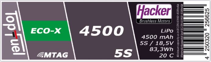 Lipo 18,5/4500 ECO-Xmtag XT90AB/XH - TopFuel LiPo 20C ECO-X 4500mAh 5S MTAG