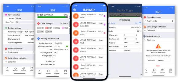 Bei der Ersteinrichtung jedes BattAir Plugins werden einmalig die Akkudaten wie Zellchemie, Hersteller, Anzahl Zellen, Kapazität und C-Raten eingegeben. Über die Zellchemie (LiFe, LiPo, LiHv, ULiHv) werden die Grenzwerte der Zellspannungen festgelegt. Die maximale Lade- und Lagerspannung kann dann in der App passend zur Zellchemie angepasst werden. Ebenso der gewünschte Ladestrom und ab wann (Timer on/off) der Akku Pack auf Lagerspannung gebracht werden soll.