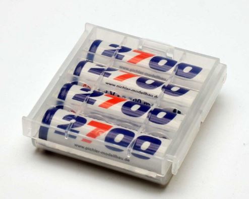 Produktbeschreibung * Sehr hohe Produktqualität * Schnelladefähig * Einzelzelle im praktischen 4er Pack * Vorgeladen und gebrauchsfertig * Niedrige Selbstentladung (wie Eneloop) * Hochwertige Zellen für Modellbau und Hobby Technische Daten (pro Zelle) * Spannung Zelle = 1,2V * Kapazität = 2700mAh * Wattstunden = 3,3Wh * Abmessungen (LxB) = 14.5 x 50mm * Gewicht = 24g Normalladung = 14 Stunden mit 270mAh Schnelladung = 3 Stunden mit 1000mAh