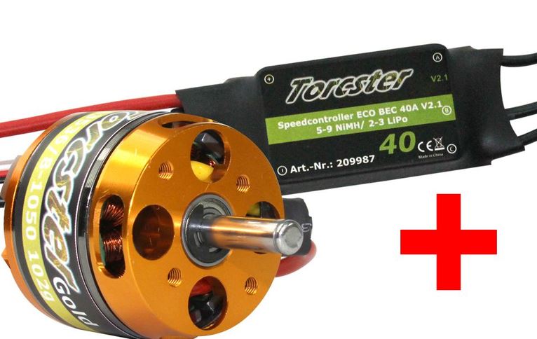 Bestehend aus Torcster Brushless Gold A3536/8-1050 102g und Torcster Speedcontroller ECO BEC 40A V2.1 inkl. ca. 10% Set-Rabatt (gegenüber Einzelkauf)