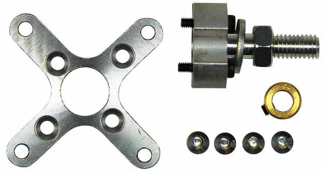 Inhalt Zubehörset: Motorflansch (nur für Typ C), Propelleraufnahme, Schrauben, Messinghülsen (4/8,9mm und 5/8,9mm)