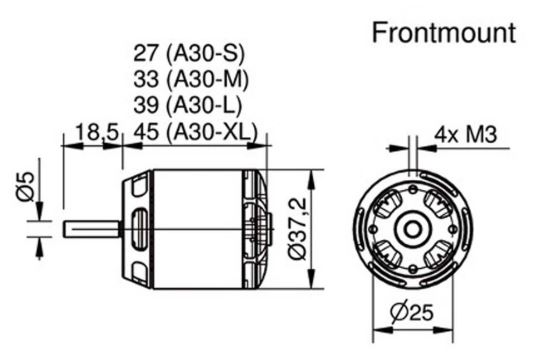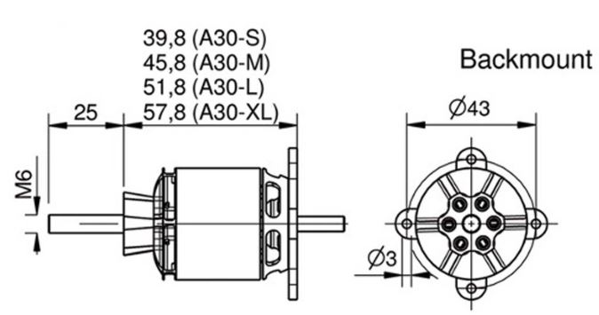 Dieser kleine und leichte Außenläufer wird in vier Baulängen (S, M, L, XL) angeboten. Die A30-Motoren, eignen sich perfekt für den Betrieb an 3S oder 4S LiPo- Akkus. Die A30-V4 Serie wird mit einem optimierten integrierten Lüfter und hochwertigen Kugellagern ausgeliefert. Das erhöht die Effizienz, die Standfestigkeit und vergrößert den Einsatzbereich. Der perfekte Antrieb in Motormodellen, Elektroseglern, Gleitschirmen und 3D-Modellen.