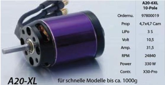 Außenläufer-Elektromotor A20-6 XL 10-Pole EVO kv2500