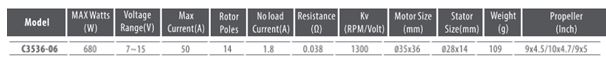 Ø 35mm / Länge 36mm / 109g / -680W / für Luftschrauben 9x4-10x4" / Motorwelle 4mm