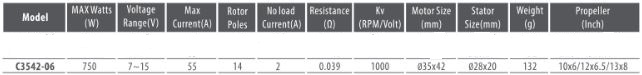 Ø 35mm / Länge 42mm / 132g / -750W / für Luftschrauben 10x6-13x8" / Motorwelle 5mm