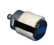 Schwerer Körper aus einer Bleilegierung, mit dickem Filsmantel, welcher mit einer Metallklemme Befestigt ist. Der Filz saugt sich voll mit Benzin. So wird der Tank bis zum letzten Tropfen sicher entleert und es gelangen keine Luftblasen in den Vergaser. Dieser Filter ist für Benzinmotoren dringend zu empfehlen. Der Filz hat eine sehr große Oberfläche und eine hervorragende Filterwirkung! Er verstopft auch nach jahrelangem Einsatz nicht.