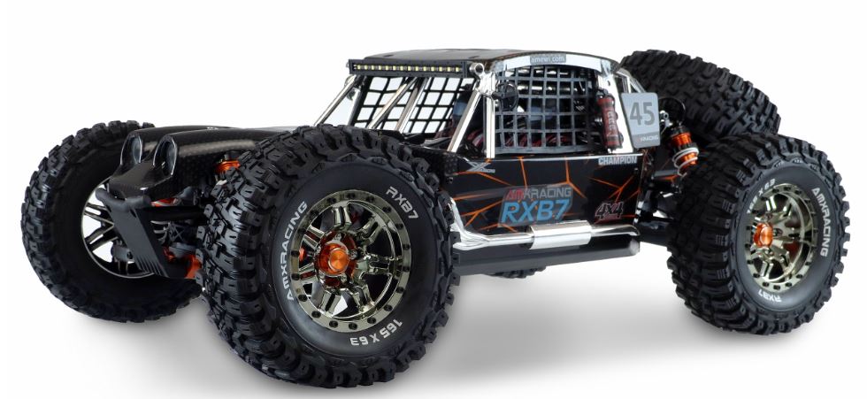 Die wunderschöne Karosserie des Modells aus stabilem Polycarbonat ist auch optisch ein absolutes Sahnestück, welches dem Modell eine sehr aggressive und Offroad typische Optik verleiht. Der RXB7 ist mit einer LED-Beleuchtungsanlage ausgestattet, welche über den Sender nicht nur ein- und ausgeschaltet werden kann, sondern auch verschiedene Leuchtmodi zulässt. Für die perfekte Ausleuchtung der Strecke sorgt eine sehr hell leuchtende Lichtleiste am Dach des Buggys.