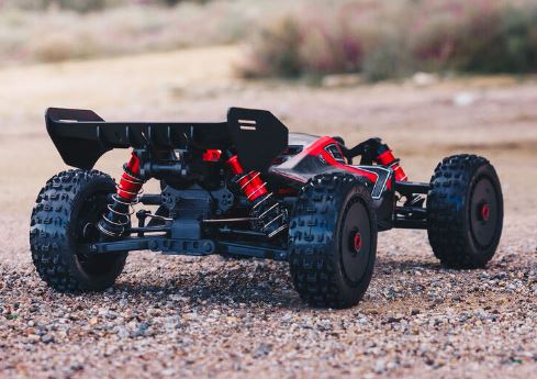 Die Low-Drag-Buggy-Räder, jetzt mit +1-mm-Sechskant, sind mit superaggressiven, multifunktionalen dBoots® KATAR™-Reifen ausgestattet. Ein Low-Drag-Flügel sorgt für sicheren Halt. Beides trägt zu sicherer Kontrolle und reaktionsschnellem Handling bei rasanten Höchstgeschwindigkeiten bei. Abgerundet wird das Ganze durch eine schlanke Buggy-Karosserie mit stromlinienförmiger Optik, mattschwarzer und roter Lackierung mit geschmiedeten Verbunddetails.