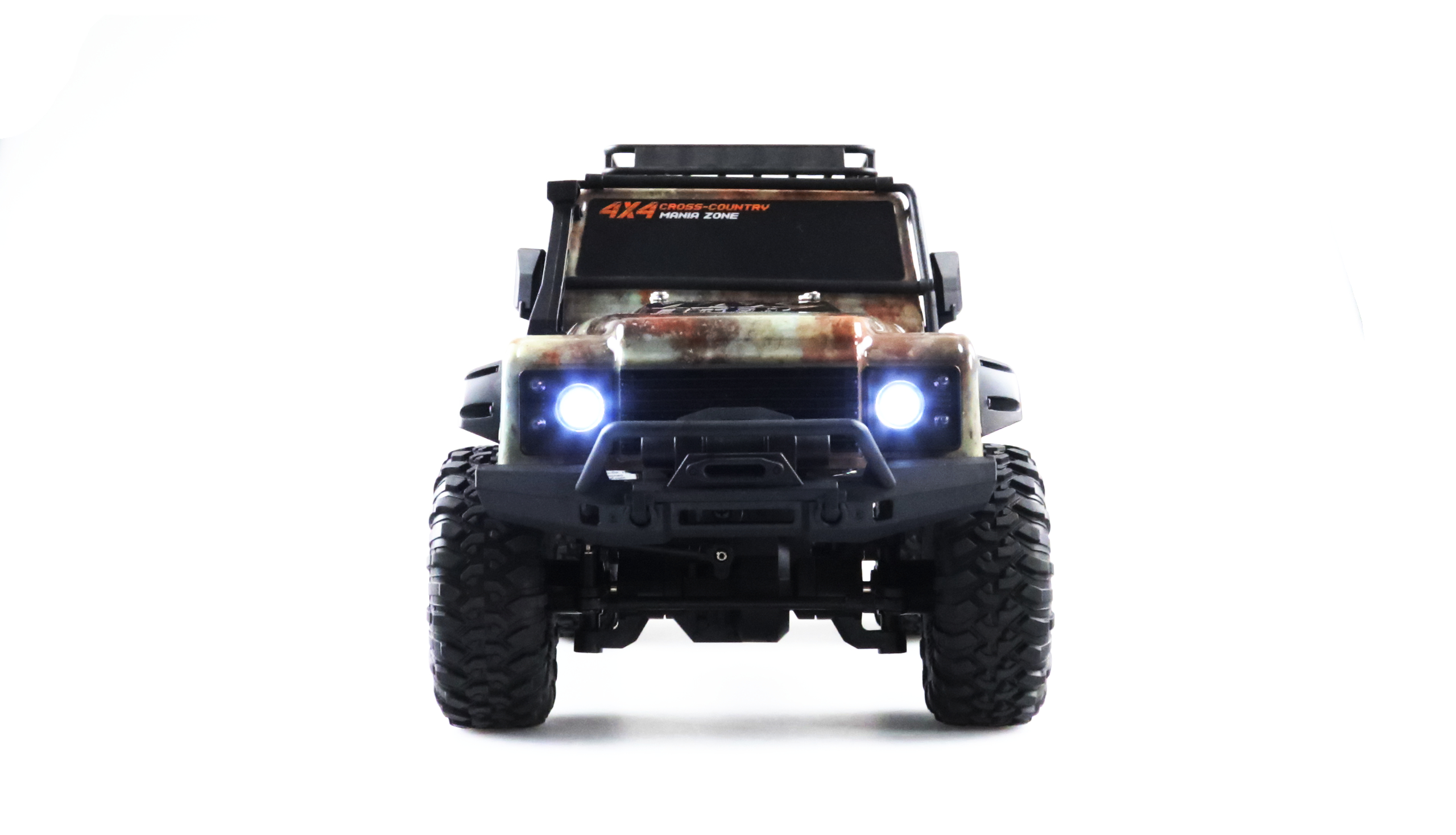 Coole Cross Country Optik trifft auf modernste Features. Durch den kräftigen Motor, dem 4WD Allradantrieb mit den oversized Reifen findet der Climbing SUV immer aus einen Weg aus der Wildnis. Helle LED's helfen bei der Orientierung. Auf dem Dachgepäckträger lassen sich kleine Dinge transportieren - ein Megaspaß für die Piloten. Der Kunststoffrahmen wurde so konzipiert, daß er das Fahrzeug wirkungsvoll bei Kollisionen schützt. Kugellager aus Metall, eine vor Spritzwasser geschützte Elelektronik, Stoßdämpfer mit echten Metallfedern, eine gut in der Hand liegende und feinfühlige Pistolenfernsteuerung mit moderner und störungssicherer 2,4GHz Funktechnologie unterstreichen den wertigen Eindruck des Modells.