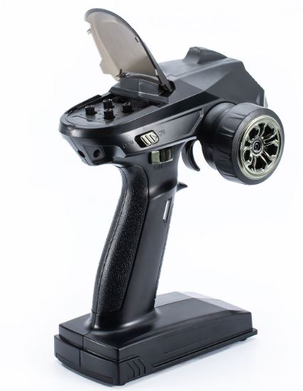Die im Lieferumfang enthaltene 2,4GHz 4-Kanal Fernsteuerung steuert alle Fahrfunktionen. Das Lenkservo leistet in der Basis-Version bereits 15kg Stellkraft. Das gesamte Modell ist wassergeschützt und trotzt so allen äußeren Einsatzbedingungen.