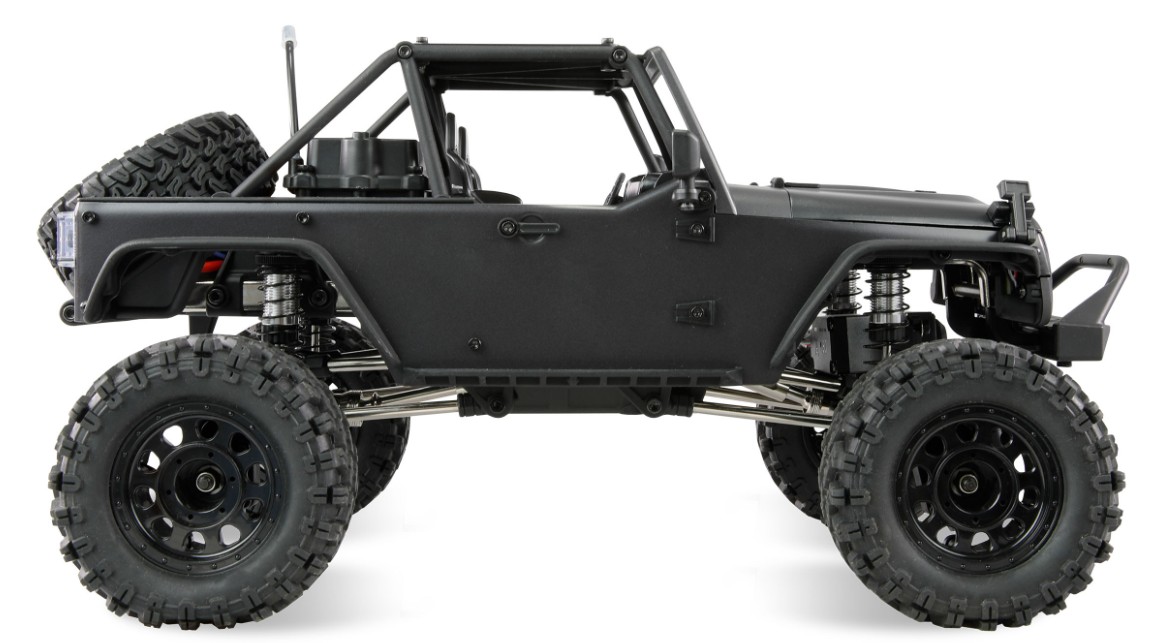 Der Hyper Go SC Scale Crawler im Maßstab 1:12 bietet auch in der Basis-Version ein eindrucksvolles Gesamtpaket für anspruchsvolle Offroad-Abenteuer: Angetrieben von einer kraftvollen 3500KV Brushless-Motor- und 45A Regler-Kombination liefert das Modell präzise Kontrolle und beeindruckende Kletterfähigkeiten. Der robuste Antriebsstrang sowie Zahnräder aus Stahl und Metalllegierung sorgen für maximale Langlebigkeit und eine zuverlässige Kraftübertragung – auch unter hoher Belastung. Für den Einsatz in der Dämmerung ist der Crawler mit schaltbarer LED-Beleuchtung vorne und hinten ausgestattet. Die hochwertige Scale-Optik, eine Aluminium-Karosserie mit schützendem Kunststoffkäfig und voll funktionsfähige Öldruck-Stoßdämpfer unterstreichen den realistischen Look und die Geländetauglichkeit. Dank RTR-Ausstattung ist das Fahrzeug sofort einsatzbereit – inklusive Fernsteuerung, Akku und Ladekabel. Weitere Features wie ein wasserdichtes Empfängergehäuse, ein 20kg Metallgetriebe-Servo, weiche Gummireifen, ein störungssicheres 2,4GHz-System und eine vollständige Kugellagerung machen diesen Crawler zum idealen Begleiter für jedes Terrain.
