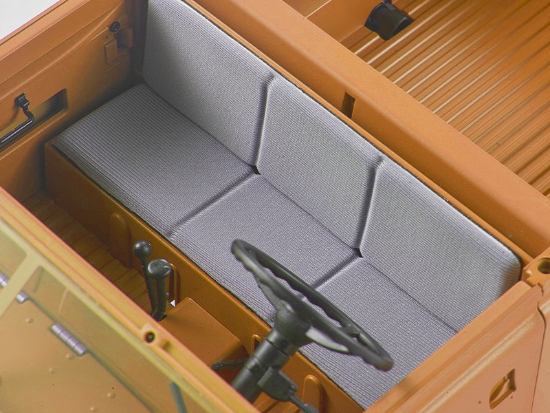Technische Daten: • Länge: 270 mm • Breite: 135 mm • Höhe: 149 mm • Radstand: 169 mm • Bodenfreiheit: 31 mm • Reifen: Ø 54.8mm, Breite 19.5mm • Maßstab: 1:12 • Motor: Brushed 180 • Servo: 3x 9g Digital PG • Empfänger/Regler-Einheit: 2,4GHz • Geschwindigkeit: max. 8km/h • Fahrzeit pro Akku: ca. 20 Minuten