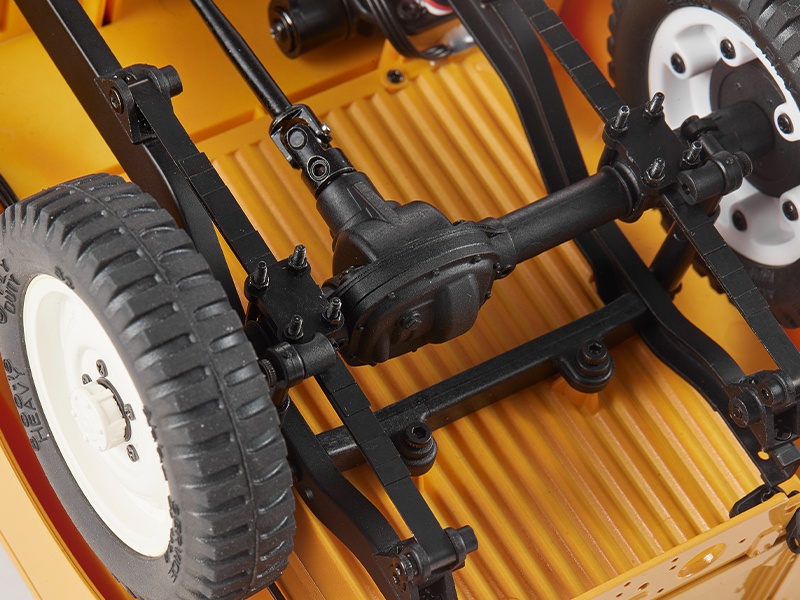 Merkmale: • Scale RC Modell im Maßstab 1:12 • offiziell lizensiert von Land Rover • widerstandsfähige Karosserie • abnehmbares, tauschbares Dach • aufklappbare Motorhaube • aufklappbare Türen • aufklappbare Heckklappe • umklappbare Windschutzscheibe • Sitze passend für 1:12 Fahrer-Figuren • zahlreiche Scale Details für eine realistische Optik • detaillierter Innenraum und Armaturenbrett • 4WD Allradantrieb • Motor, Lenkservo, Akku und Empfänger-Regler-Einheit unter der klappbaren Motorhaube • Stabile C-Channel-Rahmen-Konstruktion aus Metall • Blattfedern • 2-Gang-Getriebe mit starkem Drehmoment • Metallzahnräder übertragen die Kraft gleichmäßig auch bei langsamer Fahrt • Vollständig kugelgelagert • funktionales Beleuchtungssystem