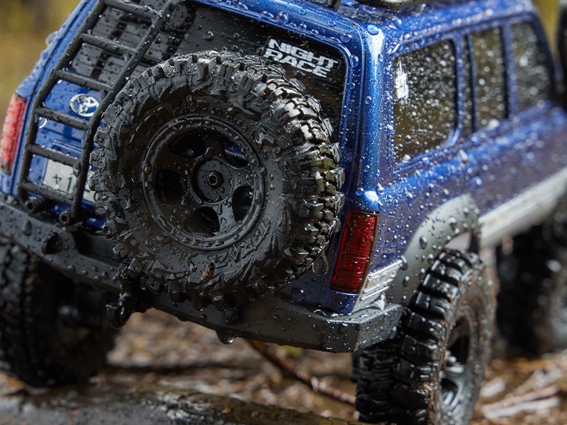 100% Scale Das Modell ist offiziell lizensiert von der Toyota Motor Corporation. Von der geraden Karosserielinie, dem Dachgepäckträger, den vorderen und hinteren Stoßfängern, dem funktionsfähigen Reserverad bis hin zur lenkbaren Blinkergruppe und den simulierten Kegelradantriebsachsen - bei diesem Scaler stimmt jedes Detail.