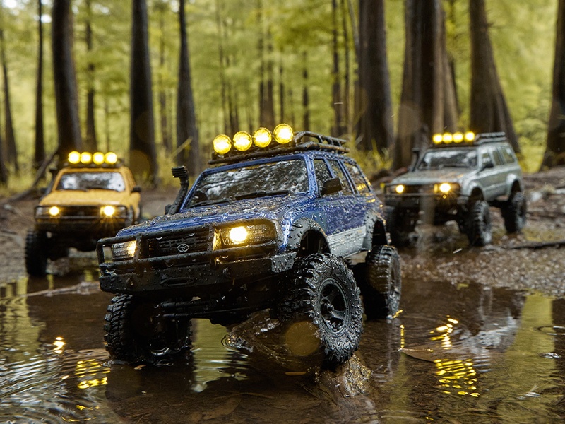 Der FCX18 Toyota LC80 ist ein offiziell lizensierter Crawler im Maßstab 1:18. Der Scaler kommt inklusive 2-Gang-Getrieb, eingebauter Elektronik, integrierter Beleuchtung, Fernsteuerung und Akku fahrfertig aus der Box.