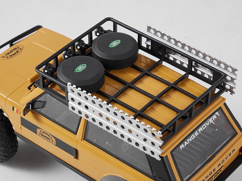 Das Modell Der FMS FCX24 Land Rover Camel Trophy, offiziell lizenziert von Land Rover verfügt über eine klappbare Hartschalen-Karosserie. Sowohl die vorderen und hinteren Stoßstangen, Kotflügelverbreitungen, Außenspiegel und Türgriffe sind abnehmbar, was z.B. Scale Enthusiasten individuelle Lackierungen vereinfacht. Aus der Camel Trophy sind 4 verschiedenen Fahrzeugtypen erhältlich: • Defender 90 • Defender 110 • Discovery • Range Rover Jedes der vier Modelle verfügt über einen Dachgepäckträger und funktionsfähige Front- und Heckscheinwerfer, die über die Fernsteuerung geschaltet werden können. Die auf dem Dach montierten Suchscheinwerfer haben festgelegte Lampenpositionen was die Installation von zusätzlichen LED vereinfacht.