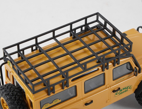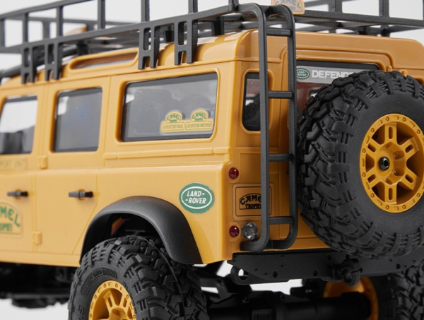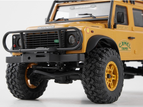 Das Modell Der FMS FCX24 Land Rover Camel Trophy, offiziell lizenziert von Land Rover verfügt über eine klappbare Hartschalen-Karosserie. Sowohl die vorderen und hinteren Stoßstangen, Kotflügelverbreitungen, Außenspiegel und Türgriffe sind abnehmbar, was z.B. Scale Enthusiasten individuelle Lackierungen vereinfacht. Aus der Camel Trophy sind 4 verschiedenen Fahrzeugtypen erhältlich: • Defender 90 • Defender 110 • Discovery • Range Rover Jedes der vier Modelle verfügt über einen Dachgepäckträger und funktionsfähige Front- und Heckscheinwerfer, die über die Fernsteuerung geschaltet werden können. Die auf dem Dach montierten Suchscheinwerfer haben festgelegte Lampenpositionen was die Installation von zusätzlichen LED vereinfacht.