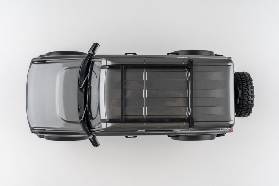 Merkmale • RC-Geländewagen im Maßstab 1:18 mit 4WD-Allradantrieb • vollproportionale Lenkung • spritzgegossene Karosserie • aufklappbare Motorhaube • überdeminsionierter 050 Bürstenmotor mit hohem Drehmoment • integrierte LED-Beleuchtung vorne und hinten • maßstabsgetreue Mehrlenkeraufhängung mit realistischen Antriebsachsen, einschließlich Kronenrad und Ritzel • maßstabsgetreue Innenausstattung • Scale Details wie Scheibenwischer, Türgriffe, Außenspiegel,… • funktionsfähiges Reserverad • realistische Ritzel- und Tellerradachse • Stoßstangen & Dachgepäckträger • traktionsstarke Reifen • am Chassis montiertes Servo • abgestimmte gefederte Stoßdämpfer • spritzwassergeschützte Elektronik • inklusive 7,4v 380mAh 2S Lipo-Akku für bis zu 30 Minuten Fahrzeit • inklusive 2,4GHz Fernsteuerung und Empfänger mit stabilem Signal
