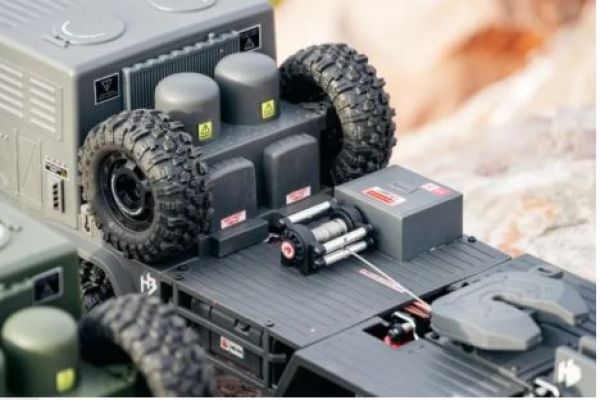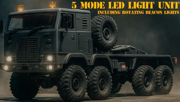 Die integrierte ferngesteuerte LED-Beleuchtung und eine voll funktionsfähige Bergungswinde sorgen für zusätzlichen Realismus und Funktionalität, sodass es mehr als nur ein RC-Modell ist.