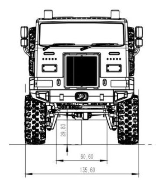 - Bodenfreiheit: 39mm; Anfahrtswinkel: 56°; Abfahtswinkel: 55,2°