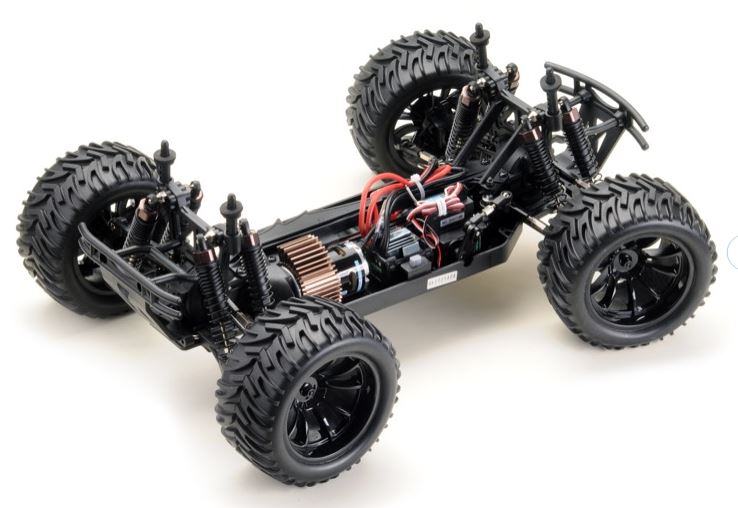 Das Auto wird von einem 550er 18T Bürstenmotor befeuert, der direkt auf den Allradantrieb zugreift. Die beiden Differentiale (vorne und hinten) werden durch eine Aluminium-Antriebswelle angetrieben.