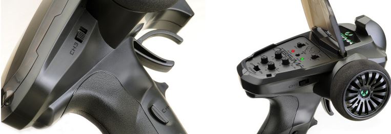 Leichtes und kompaktes Design, sowie komfortabel und ergonomisch geformt - das sind nur zwei Merkmale unserer CR4S 4-Kanal-Fernsteuerung. Natürlich sind alle Trim-, Reverse- und Dual Rate Funktionen im Cockpit verfügbar, so dass die Einstellungen einfach über Hebel und Drehknöpfe erfolgen kann. Darüber hinaus hat die Fernbedienung einen "Beginner Modus" (Geschwindigkeitsreduzierung um 50%) und eignet sich daher ideal für Piloten, welche noch nicht so viel Erfahrung mit dem Umgang solcher RC Fahrzeuge haben.