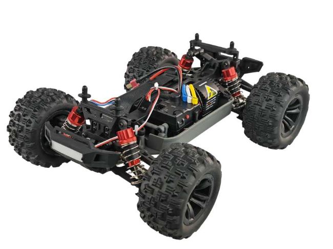 Mit dem MEW4-Monstertruck setzen wir unsere erfolgreiche Fahrzeugserie im Maßstab 1:16 nahtlos fort. Dank seiner technisch hochwertigen Ausstattung sucht das Modell in dieser Klasse seines Gleichen: Ein Brushless-Motor, Metall-Antriebsstrang, CVD-Antriebswellen, Öldruckstoßdämpfer, Metall-Differentiale und LED-Beleuchtung sind nur einige der Merkmale, die den MEW4 auf ein beachtliches Level heben. Der große Li-Ion Akku mit 1500mAh sorgt für lange Fahrzeiten von bis zu 15 Minuten. Die erreichbare Geschwindigkeit liegt bei etwa 40km/h. Ein 35A ESC und ein 17g Lenkservo sowie eine inaktive Kühlung (Kühlrippen) für den Motor tragen gleichzeitig zur hohen Langlebigkeit bei.