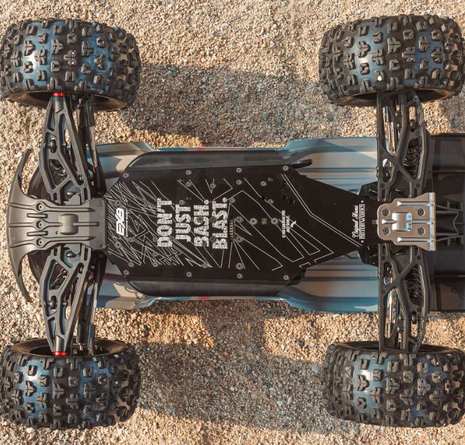 Die Chassisplatte, die Differentiale, die vordere Stoßstange, der Unterfahrschutz und sogar die Flügelhalterung wurden alle mit EXB-Robustheit (Extreme Bash) verbessert. Neue Side Guards, eine zweiteilige Tower-to-Tower-Brace und ein innerer Karosserieturm sorgen für mehr Stabilität und vereinfachen die Wartung. Die legendäre KRATON-Monstertruck-Karosserie ist jetzt in zwei auffälligen neuen mehrfarbigen Farbstellungen erhältlich und verfügt über ein praktisches, schnell lösbares, Clipless Karosseriehaltesystem.