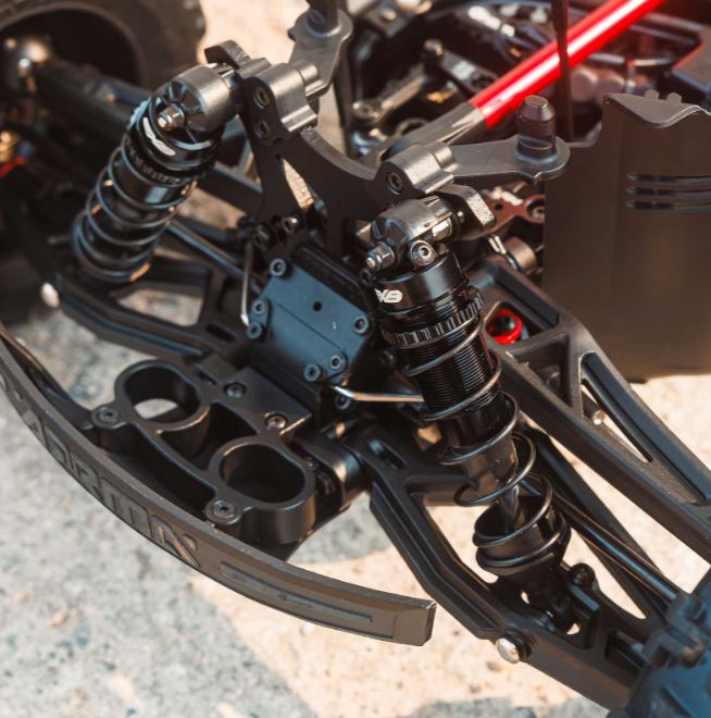 - Schwarz eloxierte Aluminium-Shock-Tower vorne und hinten