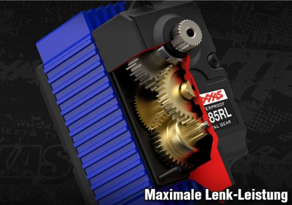 Features: • Splintenlose Monster Truck Karosserie • Über €1.000,- an Aluminium- und Leistungs-Upgrades • Drehmoment-Mitteldifferential mit Stahlritzel und Aluminiumgehäuse • Äußere Antriebswelle aus Stahl mit 17mm Aluminium-Außenflanschen • GT-Maxx Aluminium Öldruckstoßdämpfer mit gehärteten Kolbenstangen • TQi 2.4 GHz Funksystem mit Traxxas Link Wireless Modul • TSM - Traxxas Stability Management • Ultra High Torque Metallgetriebe-Lenkservo (#TRX2085RL) • Wasserfester VXL-4s Brushlessregler • Velineon 540XL Motor 2400kV • Farblich angepasste Aluminium-Tuningteile • 6061-T6 Aluminium C-Hub, Lenkhebel und Radträger • 6061-T6 Aluminium Servohorn und Lenkplatte • 6061-T6 Aluminium Chassis-Verstrebung, Wheelie-Bar-Räder, Motorhalterung und Getriebeabdeckung • 7075-T6 Aluminium-TUBES® Spurstangen vorne • Integriertes Chassis/Dämpfersteher Design • Modulares Chassis Design für einfachste Montage • Heavy Duty Aufhängungen • Selbstaufrichtsystem • Sledgehammer 2.8/3.6" Reifen und Felgen in schwarz-chrom • Über 100km/h mit optionalem 4s 6700mAh LiPo (zB. #TRX2890X)