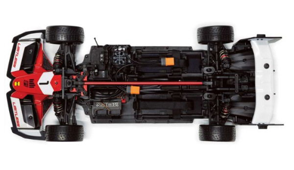 Die werkseitig lackierte Low-Drag-Karosserie kommt in aggressiven Farbschemata, die selbst im Stand schnell aussehen. Mit den Wing-Trim-Linien kannst du den Abtrieb reduzieren, wenn du maximale Geschwindigkeit willst, während der durchgehende Frontsplitter und der große Heckdiffusor dem Luftwiderstand zeigen, wo es langgeht.