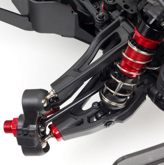 - Heavy-Duty Aufhängungsarme mit rot eloxierter Verstärkungskappe