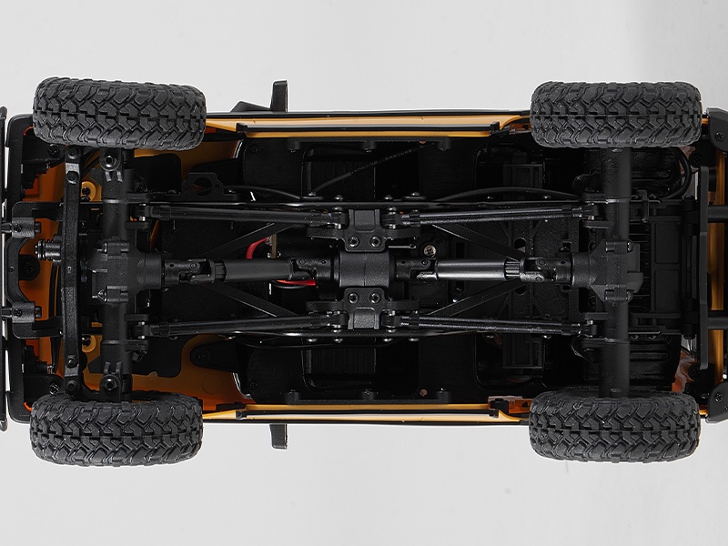 Das Chassis Das Chassis besteht aus einem nicht gelagerten trapezförmigen Metallträger mit massiven Vorder- und Hinterachsen. Um reale Fahrzeuge originalgetreu nachzubilden wurde auf die traditionellen Portalachsen, die auf dem Markt weit verbreitet sind, verzichtet. Die Reifen mit großem Durchmesser bieten dennoch ausreichend Bodenfreiheit und Steigfähigkeit.