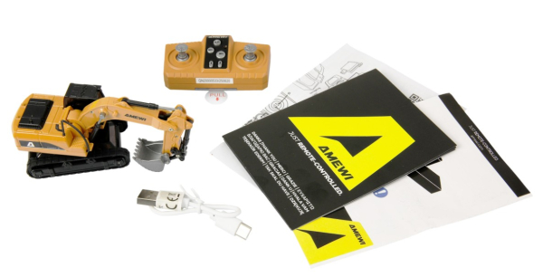Der ferngesteuerte Mini-Bagger im Maßstab 1:64 sorgt für Spielspaß bei Kindern ab 6 Jahren und bringt ordentliche Baustellen-Action ins Kinderzimmer oder auf den Schreibtisch. So lassen sich kleine Baustellenszenen wunderbar nachstellen. Die griffigen Gummiketten gewährleisten einen sicheren Vortrieb und stabile Fahreigenschaften, während die Fernsteuerung mit einem störungsfreien 2,4GHz-System für präzise Kontrolle sorgt.