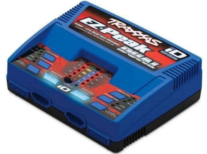 Das Combo Pack besteht aus einem Traxxas 2972GX EZ-Peak DUAL 8-Amp NiMH/Lipo Schnell-Lader mit iD-Erkennung und 2 Traxxas 5000mAh 3S Akkus des Typs 2872X, natürlich mit dem neuen Traxxas iD-Stecker, passend zum X-Maxx und vielen anderen Traxxas Fahrzeugen. (für genauere Informationen zur Kompatibilität der Akkus mit Ihrem Fahrzeug ziehen Sie bitte ihre Bedienungsanleitung zu Rate.)