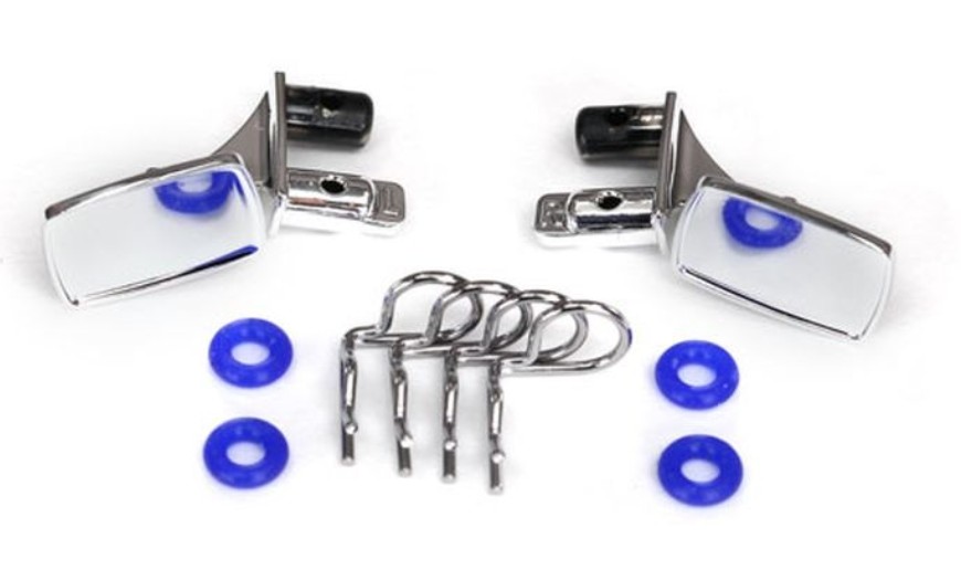 TRX-4 Seitenspiegel/ch ChevyBlazer'79 Seitenspiegel chrom l&r und Karo-Spinten (4) TRAXXAS TRX-4 Blazer & K10 Chrome Spiegel mit O-Ringe/Clips