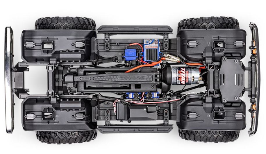Details im Überblick: • Werkseitig installiertes Long Arm Lift Kit (+25mm Fahrwerkserhöhung) • Splintenlose K5 Blazer Karosseriebefestigung • Chrom 8-Loch 2,2” Mag Felgen mit Radnabenkappen • Canyon Trail 5,3" Reifen S1-Compound • Ferngeschaltenes Lang/Kurz-Getriebe • T-Lock™ Fernsperrdifferentiale • Portalachsen • Stahlrahmenchassis • TQi™ 2,4-GHz-Funksystem mit Tempomat • 3s Power-System (Akku und Ladegerät nicht im Lieferumfang) • Wasserdichte Elektronik • Titan 21T 550 Motor • Wasserdichter XL-5 HV Fahrtenregler • High-Torque 2075X Servo mit Metallgetriebe • Ölgefüllte 110mm Aluminium GTS-Stoßdämpfer • Hochdetailliertes Chrom-Anbauteile • Kompatibel für optionales Pro-Scale LED-Lichtsystem (#TRX8090X)