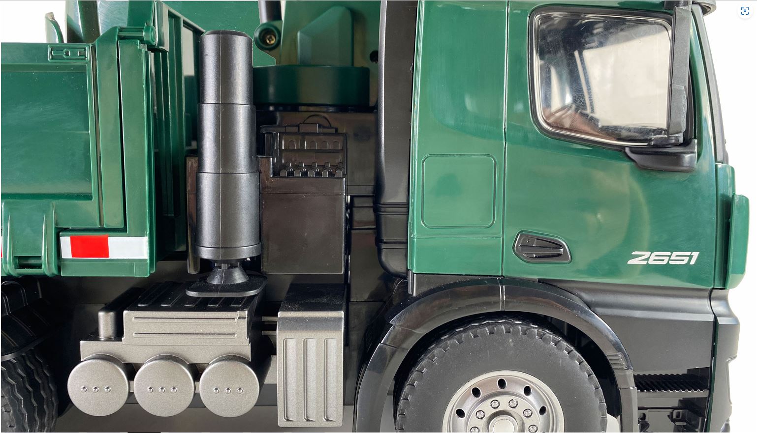 Alle Fahrfunktionen und diverse Funktionen des Kranaufbaus (bis auf Drehen sowie Öffnen/Schließen des Greifers) sind vollproportional steuerbar. Zusätzlich liegt dem Set ein Schrottgreifer bei, der noch mehr Vielfalt beim Einsatz ermöglicht und Abwechslung garantiert. Beide Greifer, Holzgreifer und Schrottgreifer, lassen sich binnen kurzer Zeit austauschen. Das Fahrzeug verfügt über eine LED-Beleuchtung vorne und hinten, Blinker vorne und hinten sowie zwei gelbe Warnleuchten auf dem Dach, sodass auch bei Dämmerung stilecht gearbeitet werden kann. Darüber hinaus ist im Modell ein Soundmodul verbaut, welches die Fahrfunktionen realistisch wieder gibt, inklusive Rückfahrwarnton! An der Kippmulde können alle Seiten der Bordwand geöffnet werden, um z.B. auch längere Holzstämme zu transportieren. Abgerundet wird das Set durch den Lieferumfang mit Akku (7,4V LiIon 1200mAh), Ladegerät, hochwertigem 2,4GHz Sender und Montagewerkzeug inkl. Schraube für den zusätzlichen Schrottgreifer.