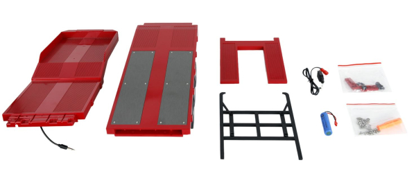 Der Tieflader-Sattelauflieger Dreiachser ist die ideale Ergänzung zur Scania 770S Zugmaschine im Maßstab 1:18. Der Auflieger lässt sich direkt mit der Fernsteuerung des Fahrzeugs bedienen und ermöglicht so ein realistisches und komfortables Zusammenspiel zwischen Zugmaschine und Trailer. Dank der elektronisch steuerbaren Rampen und Stützen können diese präzise auf- und abgefahren werden, was das Be- und Entladen sowie das An- und Abkoppeln besonders einfach macht. Eine integrierte LED-Beleuchtung sorgt zusätzlich für eine authentische Atmosphäre – besonders eindrucksvoll bei Fahrten in gedämpftem Licht.