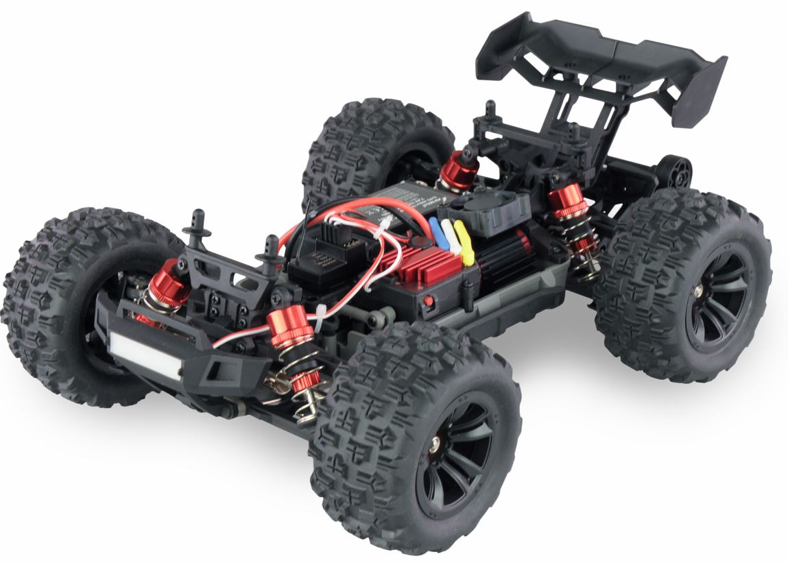 Der Hyper Go Truggy im Maßstab 1:16 beschleunigt mit seinem 2845 Brushless-Racing-Motor auf bis zu 45 km/h und sorgt mit Reguliermöglichkeiten für präzises Handling. Dazu zählen zwei einstellbare Höchstgeschwindigkeitsstufen, ein schnelles Lenkservo für agile Richtungswechsel, einstellbare Aluminium-Öldruck-Stoßdämpfer, ein einstellbares Fahrwerk sowie eine einstellbare Wheelie-Bar. Metall-CVD-Antriebswellen, Metall-Kardanwelle und 45A Brushless-Regler inkl. aktivem Lüfter runden die Ausstattung ab.