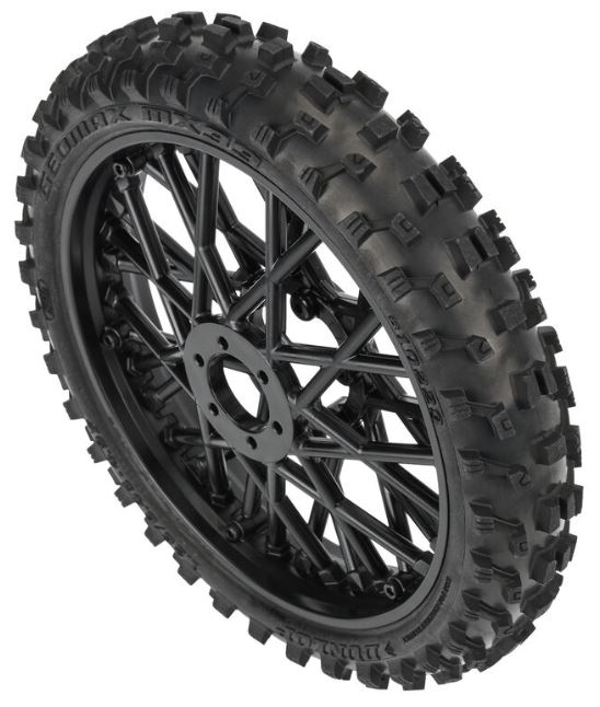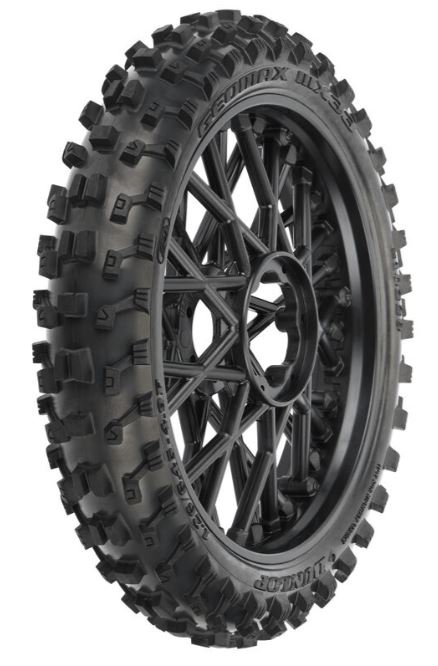 Der MX33 ist vormontiert auf dem schwarzen Bullyspoke V2 Bead-Style-Rad von Pro-Line, das sowohl hinsichtlich der Haltbarkeit als auch der Ästhetik Vorteile bietet. Die Speichendicke wurde erhöht, um ein Verbiegen bei harten Stößen zu verhindern. Die Wülste wurden insgesamt zur Radmitte hin verlegt, wodurch ein viel maßstabsgetreueres Reifenprofil entsteht, das zu Ihrem echten Dirtbike passt. Im Reifeninneren befindet sich ein hochwertiger, langlebiger geschlossenzelliger Einsatz.