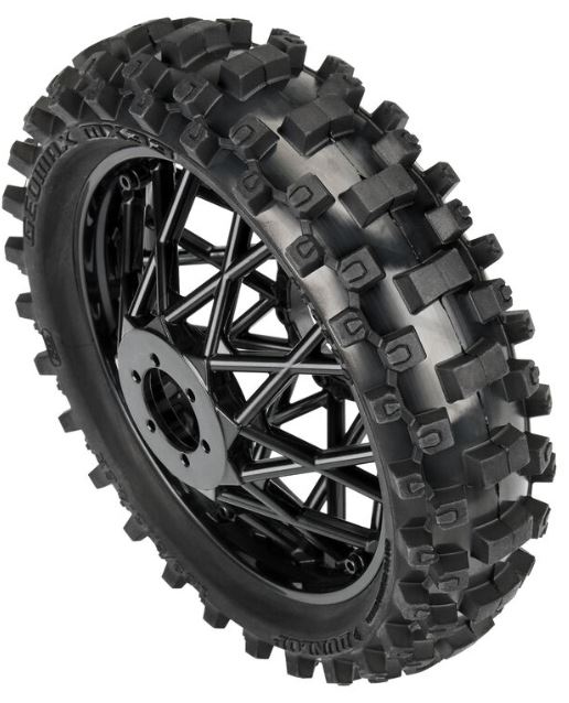 Der MX33 ist vormontiert auf dem schwarzen Bullyspoke V2 Bead-Style-Rad von Pro-Line, das sowohl hinsichtlich der Haltbarkeit als auch der Ästhetik Vorteile bietet. Die Speichendicke wurde erhöht, um ein Verbiegen bei harten Stößen zu verhindern. Die Wülste wurden insgesamt zur Radmitte hin verlegt, wodurch ein viel maßstabsgetreueres Reifenprofil entsteht, das zu Ihrem echten Dirtbike passt. Im Reifeninneren befindet sich ein hochwertiger, langlebiger geschlossenzelliger Einsatz.