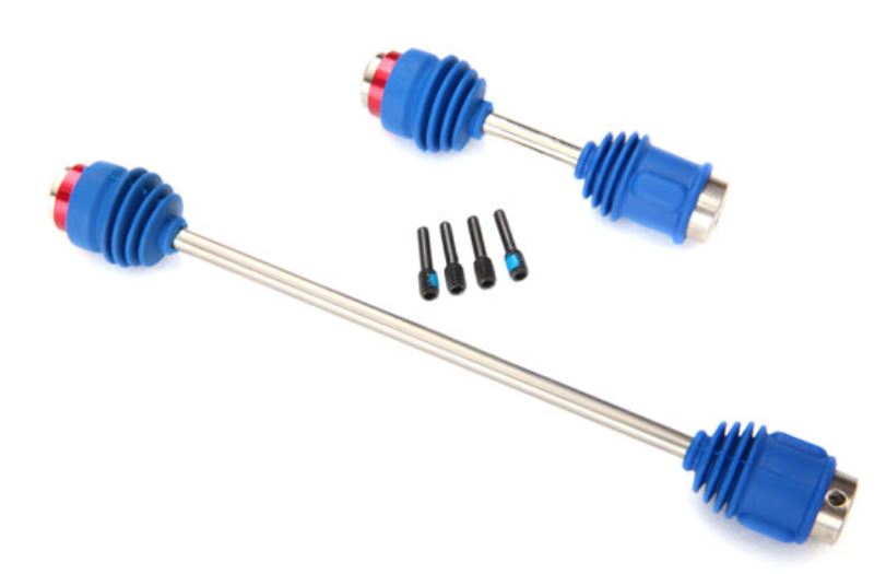 Die inneren und äußeren U-Gelenke sind geschmiert und abgedichtet durch Gummimanschetten für maximalen Schutz vor den Elementen mit leichten Aluminiumhülsen, um die Achsbolzen an Ort und Stelle zu halten. Die Schäfte aus vernickeltem Stahl, die blauen Silikonstiefel und die rot eloxierten Aluminiumakzente sehen nicht nur gut aus, sondern sind auch nach genauen Spezifikationen für ultimative Festigkeit und Leistung konzipiert.