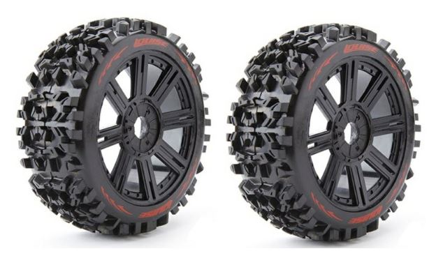 Produktinformationen "1:8 Buggy Komplettrad B-Pioneer soft schwarz Speiche (2)" Durchmesser: 117,8mm Breite: 42mm Aufnahme: 17mm Inhalt: 2 Stück passend für: 1:8 Buggy mit 17mm Mitnehmer