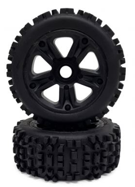 Die verklebten Kompletträder mit Schaumstoffeinlagen passen auf alle CARSON 1:8er Buggys (Felgenmitnehmer: 17 mm).
