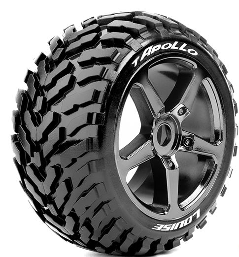 Louise RC tyres Louise RC - T-APOLLO - 1-8 Truggy Reifen - Fertig Verklebt - Soft - Speichen Felgen Schwarz Chrom - 0-Offset - Hex 17mm - 1 Paar (LR-T3252SBC)