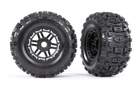 Reifen und Räder, montiert, geklebt (schwarze Räder, Doppelprofil (2,8 Zoll außen, 3,6 Zoll innen), Sledgehammer®-Reifen, Schaumstoffeinlagen) (2) (17 mm verzahnt) (TSM®-zertifiziert)